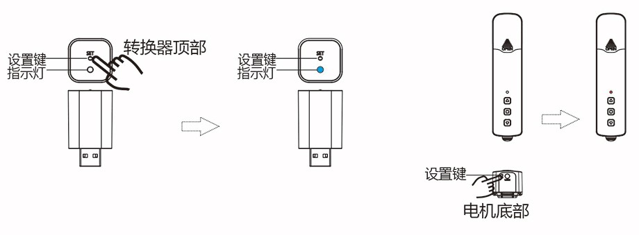 ◆點按轉(zhuǎn)換器【設(shè)置鍵】,當(dāng)轉(zhuǎn)換器【指示燈】藍色快閃后,連續(xù)點按電機【設(shè)置鍵】兩次,電機【指示燈】紅色慢閃;