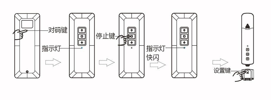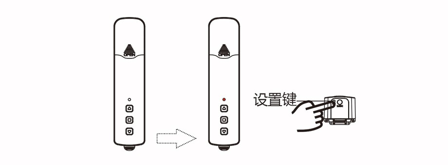 ◆長按電機【設(shè)置鍵】,直到電機【指示燈】紅色閃一下,松手;